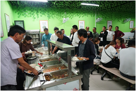參觀結束后,大崗村的老師們和美盛員工代表一起在員工食堂用餐,食堂的師傅們?yōu)楦魑焕蠋煖蕚淞素S盛的午餐